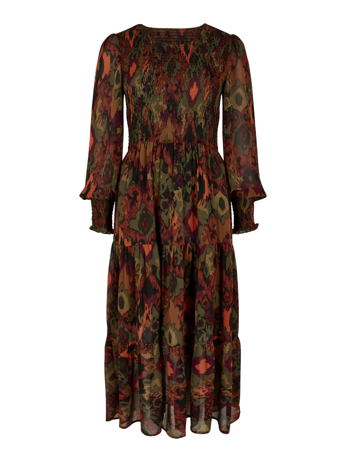 Apricot Jurk ‘Ikat’ kaki / gemengde kleuren