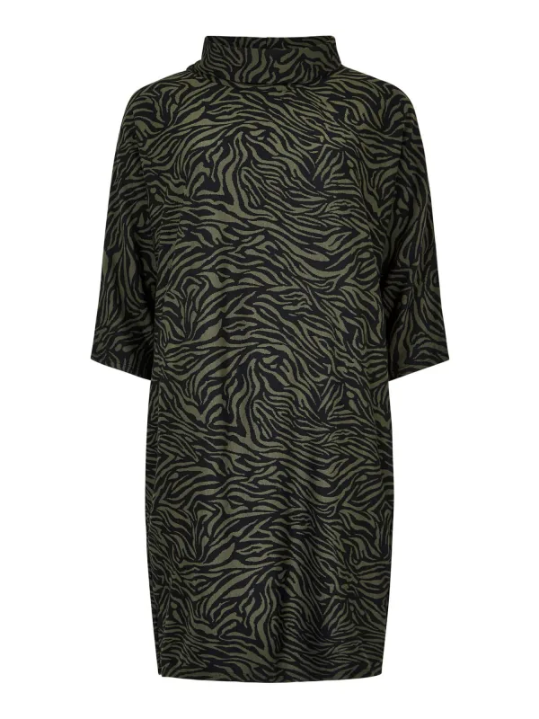 Halstype: Opstaande kraag; Motief: Dierenprint; Lengte: Knielengte; Pasvorm: Losse pasvorm; Armlengte: Driekwart mouw
