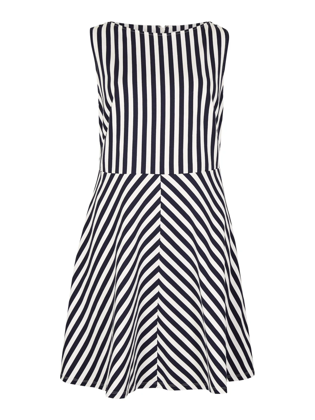 Design: Gevoerde zoom/rand, Rug rits; Type sluiting: Ritssluiting; Materiaal: Jersey; Halstype: Boothals; Motief: Gestreept; Soort bandjes: Brede bandjes; Extra's: All-over patroon; Lengte: Kort/mini; Pasvorm: Normale pasvorm; Armlengte: Mouwloos