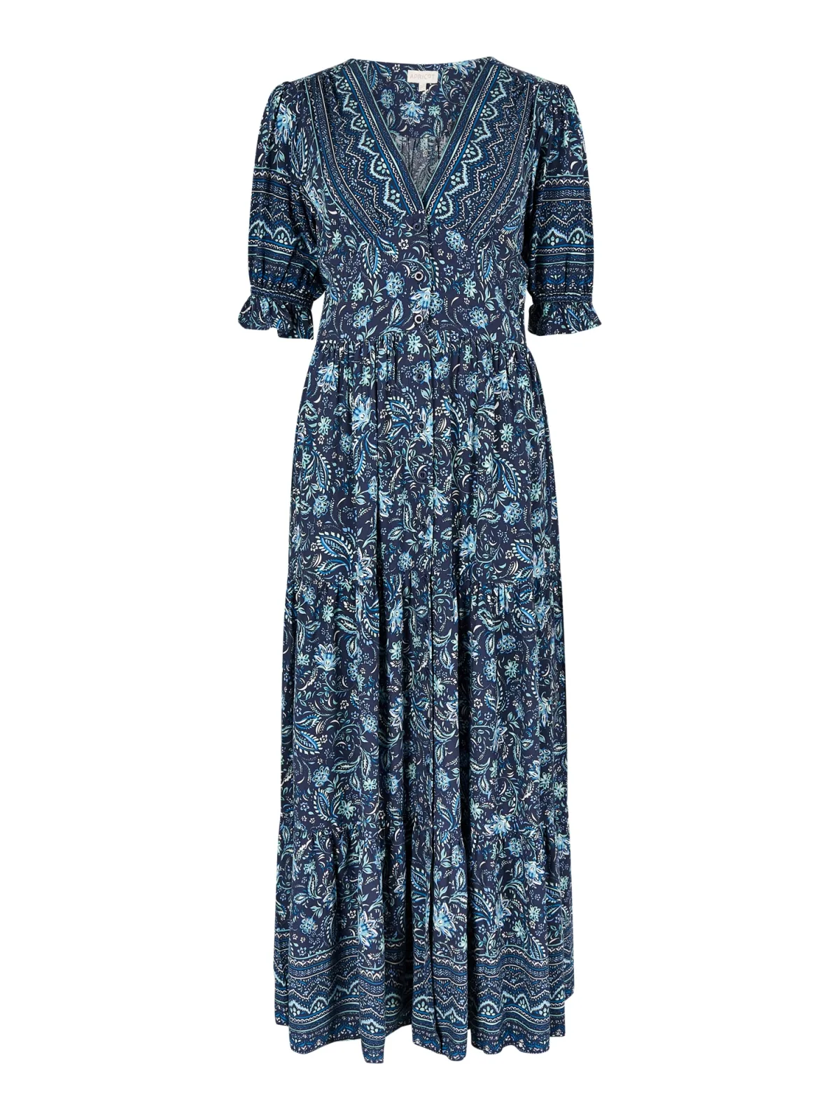 Design: Pofmouwen; Type sluiting: Knoopsluiting; Materiaal: Viscose; Halstype: V-hals; Motief: Bloemenprint; Extra's: All-over patroon; Lengte: 7/8 lengte; Pasvorm: Normale pasvorm; Armlengte: Halve mouw