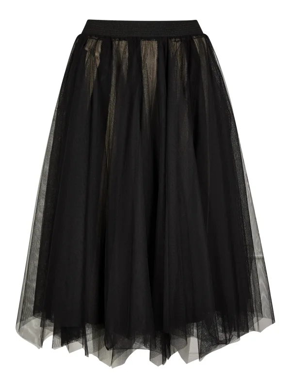 Design: Elastische taille/zoom, Tailleband; Type sluiting: Elastische band; Materiaal: Tule; Motief: Effen; Rokvorm: A-lijn rok; Details: Ruches, Volant; Extra's: Op staal naden; Lengte: 3/4 lengte; Pasvorm: Normale pasvorm; Taillehoogte: Mid waist