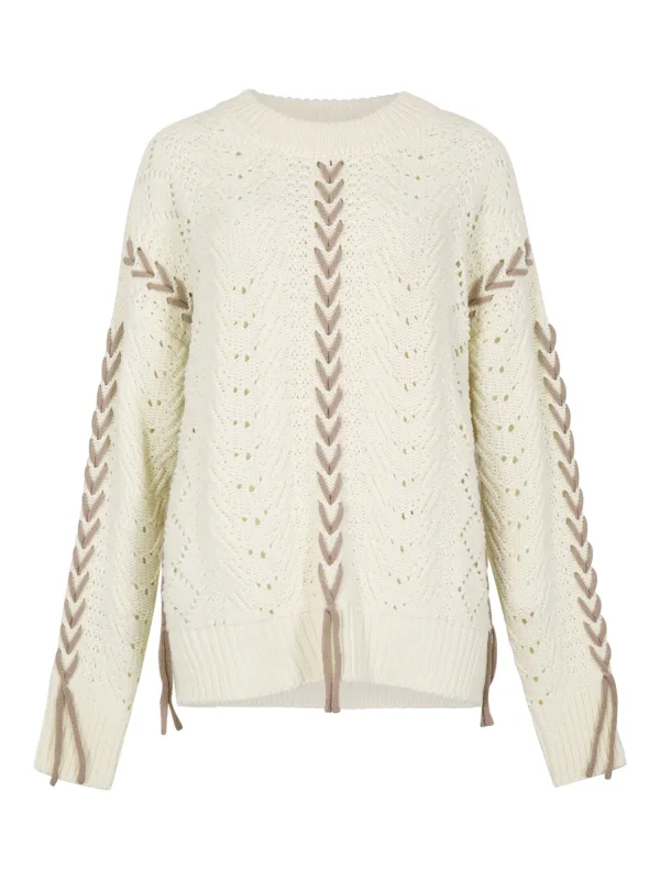Design: Overcut schouder; Type sluiting: Open; Materiaal: Knitwear; Halstype: Ronde hals; Details: Borduursels; Extra's: Op staal naden; Pasvorm: Losse pasvorm; Armlengte: Lange mouw; Lengte: Normale lengte