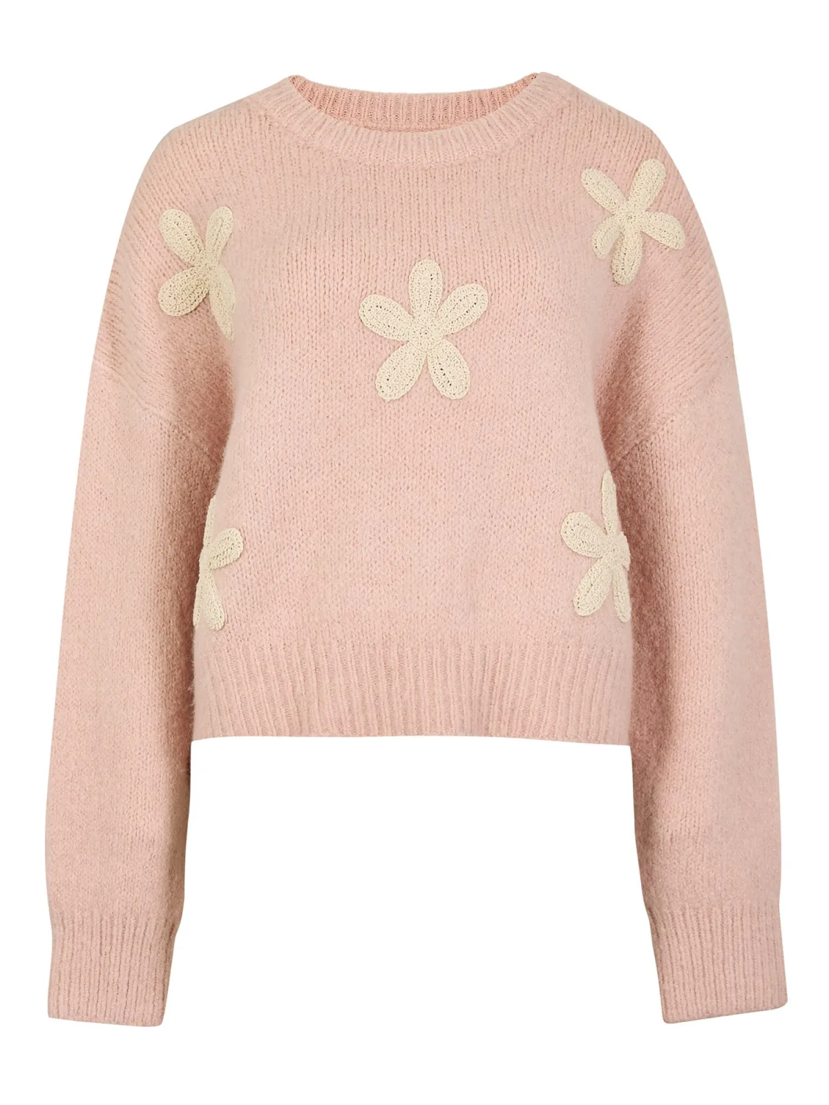 Apricot Trui ‘Daisies’ ecru / oudroze