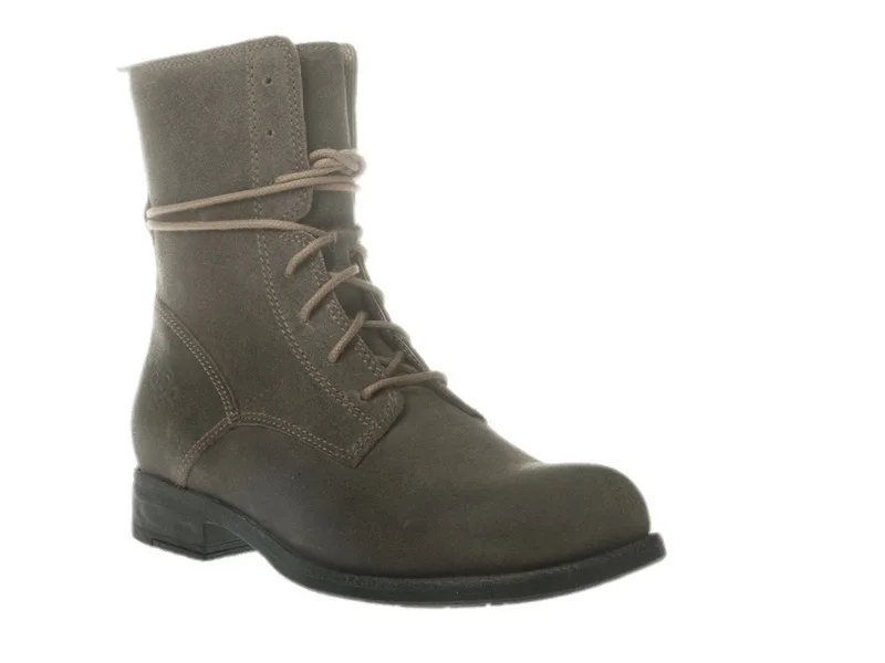 Halfhoge veterlaars in geruwd leer met ritssluiting aan de binnenkant.
