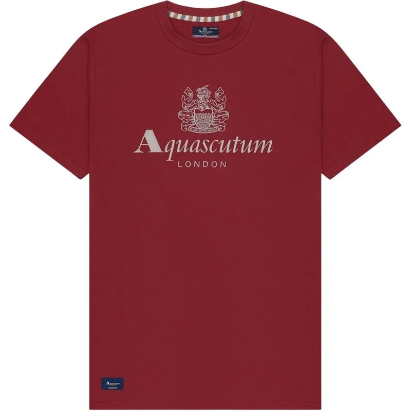 Aquascutum Active Beach Basic Tshirt Met Groot Logo In Bordeauxrood