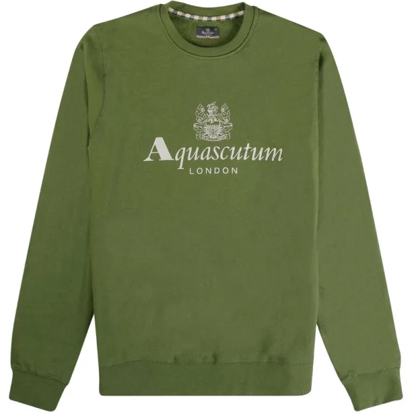Aquascutum Active Big Logo Crew Neck Army Green Sweatshirt