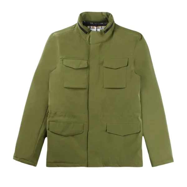 Verfijn je outdoorstijl met de Aquascutum ACTIVE FIELD JACKET in stijlvol legergroen. Dit technische meesterwerk is gemaakt van een duurzame mix van 82% polyester en 18% nylon en heeft een beschermende col met geïntegreerde nylon capuchon en gesealde rits. De luxe gewatteerde voering met Primaloft-isolatie biedt uitzonderlijke warmte zonder extra volume, terwijl verborgen drukknopen zorgen voor een strakke pasvorm. Gemaakt van Aquascutums innovatieve "Hydro"-stof, combineert deze field jacket premium prestaties met een tijdloos Brits design voor de veeleisende moderne man
