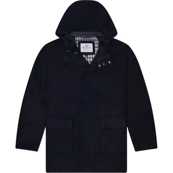 Aquascutum Active Wollen Jas Met Capuchon In Marineblauw