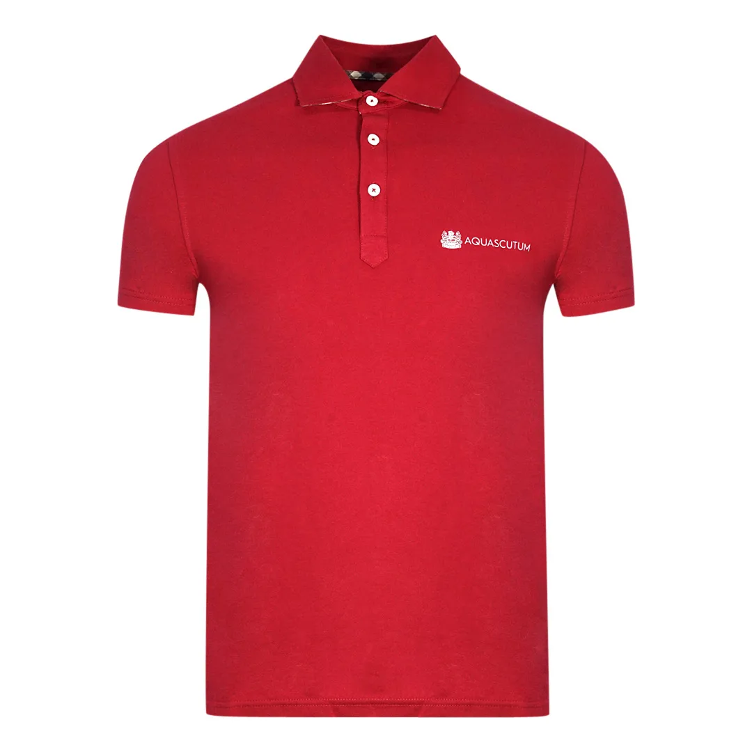 Aquascutum Aldis Crest bloklogo rood poloshirt. Aquascutum rood poloshirt. Merklogo, korte mouwen. Stretch pasvorm 95% katoen 5% elastaan. Normale pasvorm, valt normaal qua maat. Stijlcode: QMP040 32