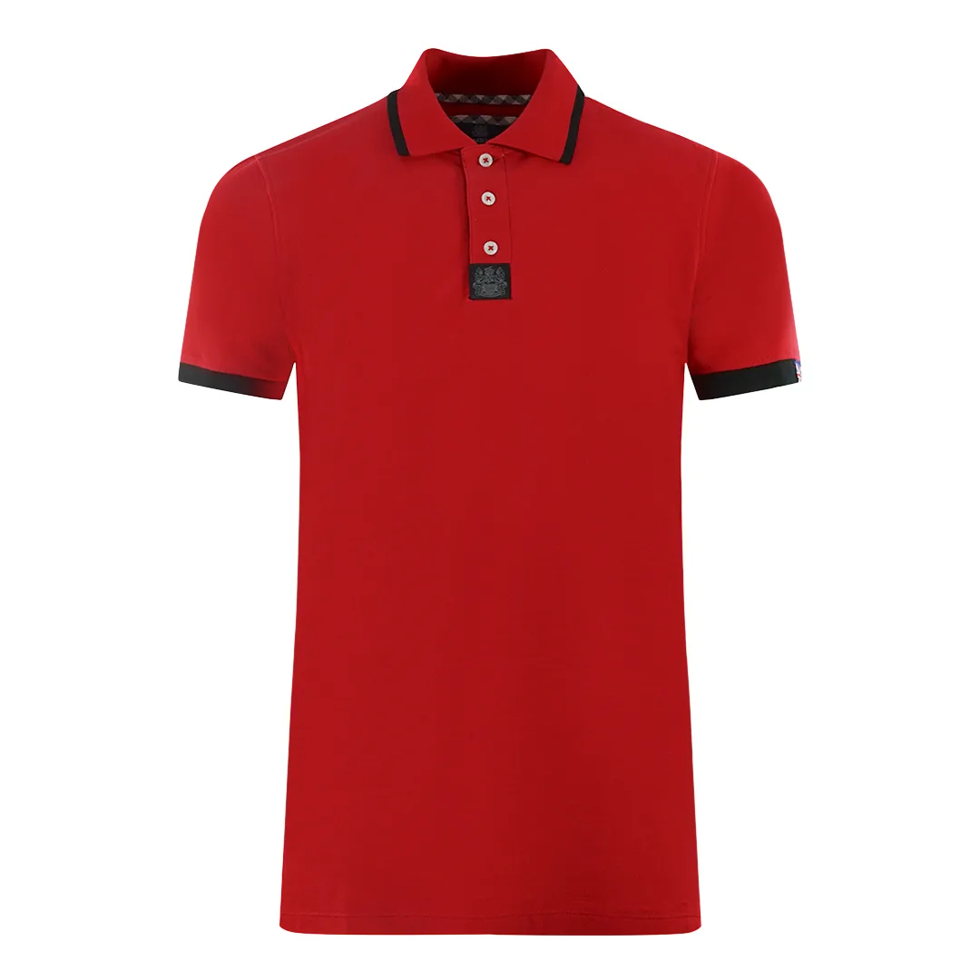 Aquascutum Branded Shoulder Tipped Red Polo Shirt