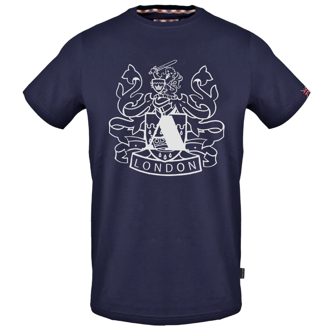 Aquascutum groot schild Aldis logo marineblauw Tshirt