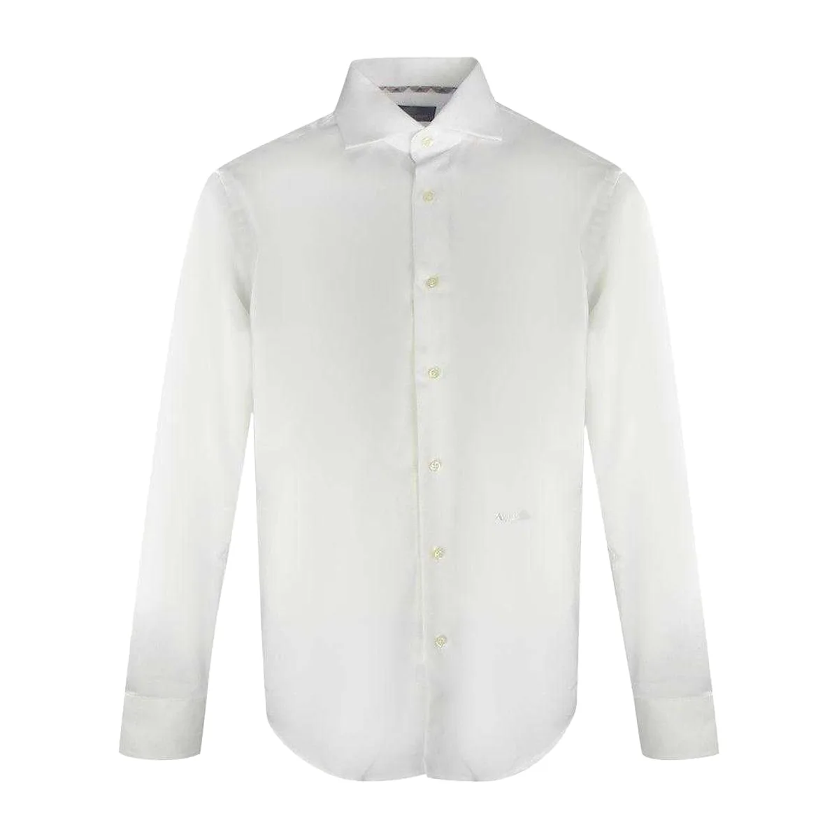 Aquascutum Heren Geborduurd Logo Katoenen Overhemd (Wit)