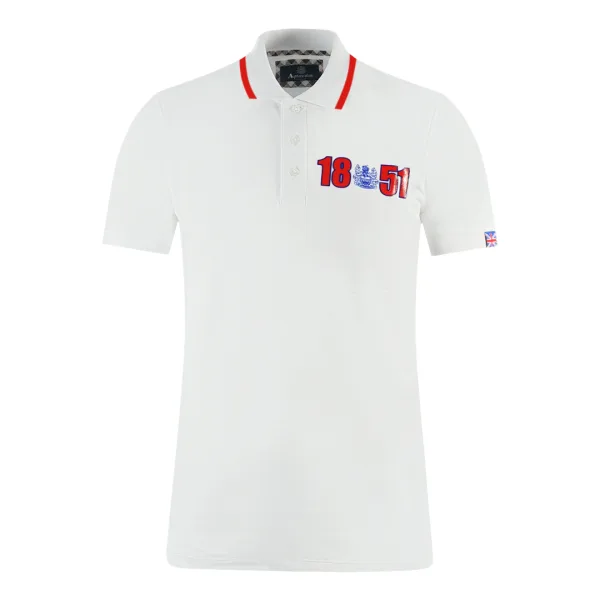 Aquascutum London 1851 White Polo Shirt. Look sharp in this stylish Aquascutum Logo White Polo Shirt, featuring an iconic branded logo. From office meetings to evening drinks, let this timeless classic instantly elevate your everyday look!. Aquascutum London Embroidered Aldis Logo Surrounded By 1851 Founding Year Numbers. 100% Cotton, Regular Fit, Fits True To Size. British Flag Badge On Left Sleeve, Aquascutum Classic Check On The Button Down Underside, Collar Neck, Short Sleeve, Button Closure. Style Code: P01323 01