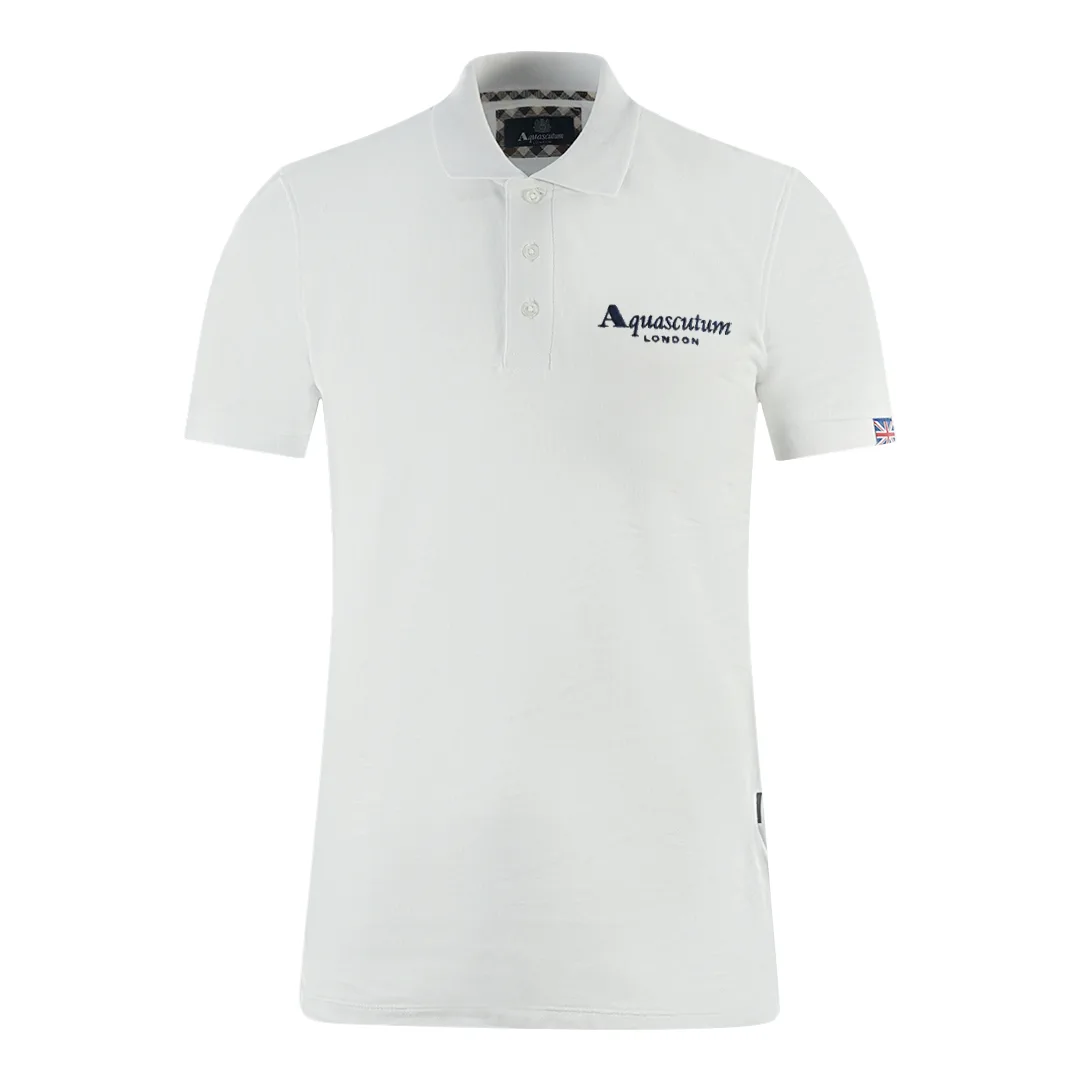 Aquascutum London Classic White Polo Shirt. Experience the sophistication of the Aquascutum brand with this classic White polo shirt, featuring a subtly embroidered brand logo. Feel the quality craftsmanship of this timeless piece, offering style and comfort for any occasion. Add some elegance to your wardrobe today!. Embroidered Branding on The Left Chest, Aquascutum London Classic White Polo Shirt. 100% Cotton, Regular Fit, Fits True To Size, Button Closure, Union Jack Logo. Check Detail Under The Button Fasten, Short Sleeve, Collar Neck. Style Code: P01523 01