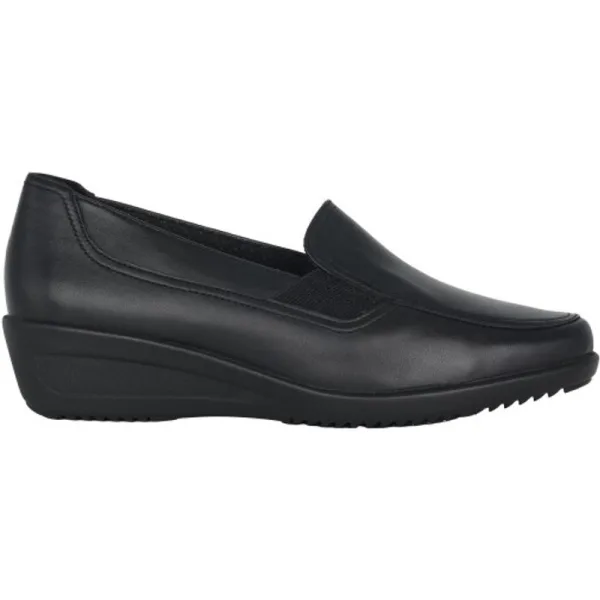 Deze geweldige verstoppertje, hooggesloten zwarte schoen is een van de wilde jokers van de garderobe van vrouwen! De ZÜRICH slip-on schoen vertegenwoordigt de laatste comfortmode, zowel met zijn extra zachte HighSoft leren bovenkant als zijn zwarte kleur. De wigzool en de vervangbare binnenzool in combinatie met de luchtkamerrubberen zool zorgen voor een lichte, luchtige wandeling, en de geïntegreerde rubberen band aan beide zijden van het bovenste deel zorgt voor een gemakkelijke pasvorm en een comfortabele pasvorm die zich aanpast aan de voet. Het garandeert een vrouwelijke look en wordt aanbevolen voor zowel rokken als broeken.