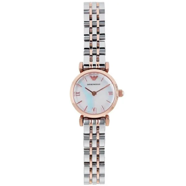 Het dameshorloge AR1764 van zilver en roségoud roestvrij staal Emporio Armani is een ongelooflijk dameshorloge. Dit horloge heeft een kast van gehard staal van 22 meter met een eenvoudig kenmerk. Het horloge heeft een parelmoeren wijzerplaat met een stalen band en wordt aangedreven door Quartz-technologie. Het horloge is waterdicht tot 30 meter en wordt geleverd met een showdoos.