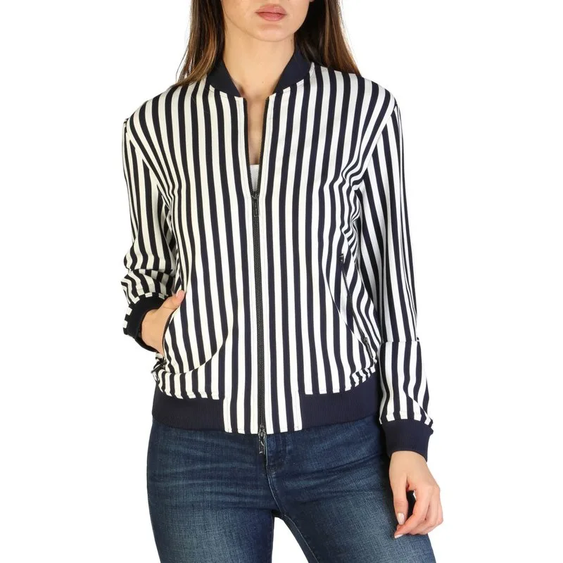 Merk: Armani Exchange Geslacht: Dames Type: Bomber Seizoen: Lente/Zomer PRODUCTDETAIL • Kleur: blauw • Patroon: gestreept • Sluiting: met rits • Mouwen: lang • Zakjes: ritszakjes SAMENSTELLING EN MATERIAAL • Samenstelling: -4% elastaan -27% polyamide -69% viscose • Wassen: machinewas op 30°