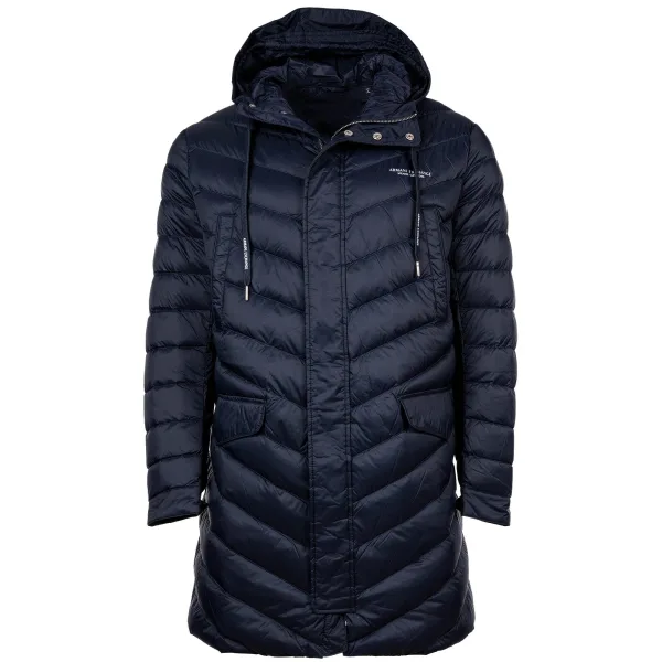 Elegante donsjas met gedrukt Armani Exchange-logo. Gevoerde buitenjas met opstaande kraag.