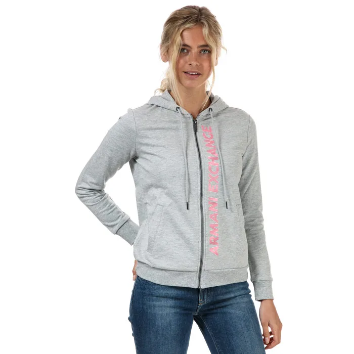 Dames Armani Exchange Zip Hoody in grijs. - Verstelbare capuchon met trekkoord. - Volledige ritssluiting. - Lange mouwen. - Twee voorzakken. - Armani Exchange-logo op de borst. - Normale pasvorm. - 100% Polyester. Machinewasbaar. - Ref: 3GYM85JZ6Z3911