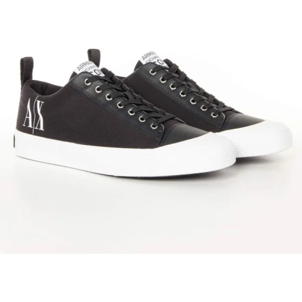 Armani Exchange Icon herensneakers, zwart katoen. Authentieke Armani Exchange merkschoen - streetwear/sportwear design van Armani Exchange - Armani Exchange voor heren, perfect voor dagelijks gebruik - deze zwarte Armani Exchange sneakers passen perfect bij de rest van je garderobe - comfortabele katoenen stof - klassieke veters - Icon design - synthetische materialen