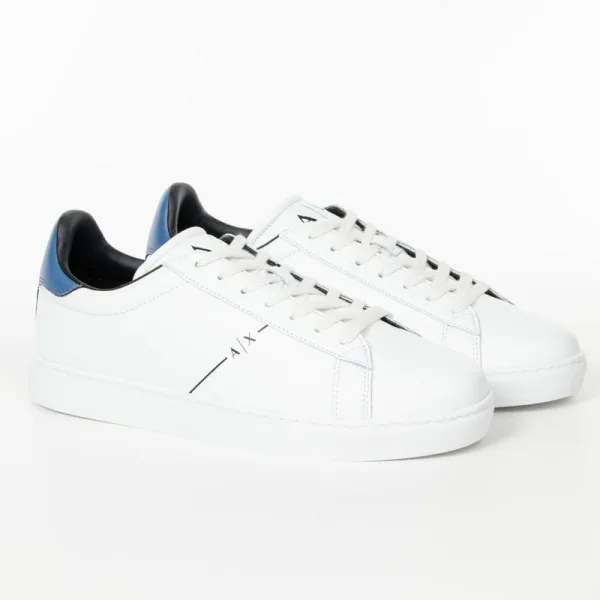 Armani Exchange Classic Sneakers voor heren, wit leer. Authentieke schoen van het merk Armani Exchange - streetwear/sportswear design van Armani Exchange - Armani Exchange voor heren, modieus en perfect voor dagelijks gebruik - de witte Armani Exchange sneakers zijn ideaal te combineren met de rest van je garderobe - comfortabel leren bovenwerk - klassieke veters - klassieke sneakers - synthetisch materiaal.