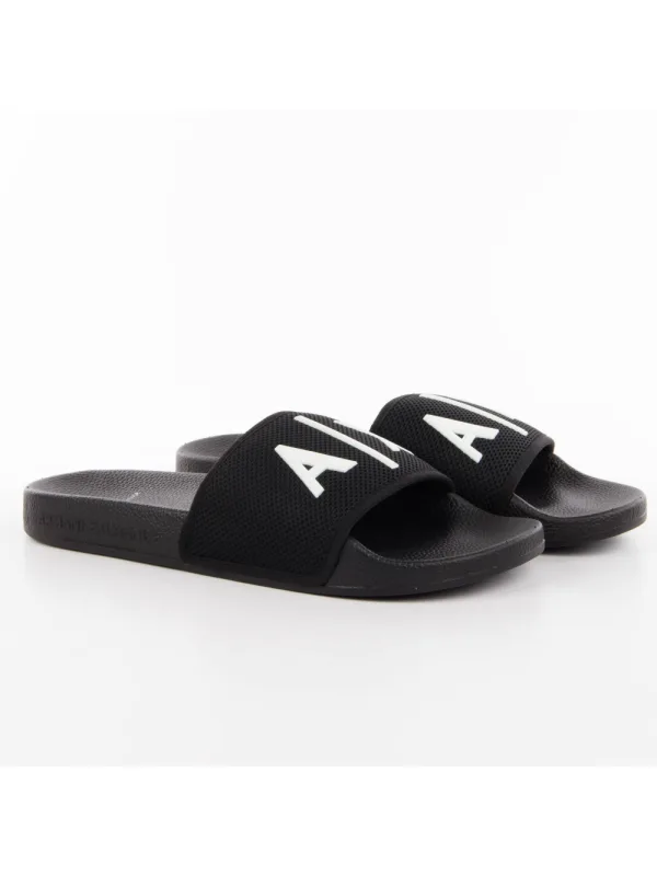 Armani Exchange Milano herenclaquette van zwart synthetisch materiaal. Authentieke schoen van het merk Armani Exchange - streetwear/sportswear design van Armani Exchange - Armani Exchange voor heren, modieus en perfect voor dagelijks gebruik - de zwarte Armani Exchange claquette past perfect bij de rest van je garderobe - comfortabel synthetisch materiaal - klassieke gesp - Milano - synthetisch