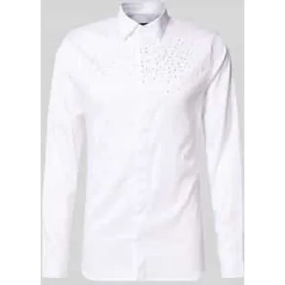 Vrijetijdsoverhemd van ARMANI EXCHANGE voor heren;Mix van katoen en elastaan;Regular fit;Model 'CAMICIA';Kentkraag;Knoopsluiting;Met siersteentjes;Ruglengte bij maat M: 78 cm;Schouderbreedte bij maat M: 43 cm;Mouwlengte bij maat M: 66 cm