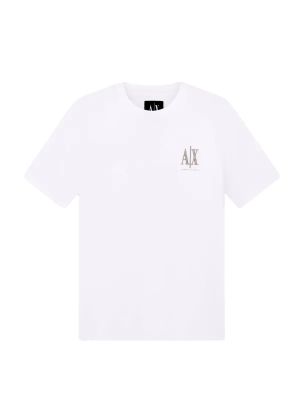 Wit katoenen T-shirt voor heren van Armani Exchange Milano AX. Originele kleding van het merk Armani Exchange – streetwear/sportkleding design van Armani Exchange – herenmode van Armani Exchange, perfect voor dagelijks gebruik – dit witte Armani Exchange T-shirt is ideaal te combineren met de rest van je garderobe – comfortabel katoen – klassiek – Milano AX.