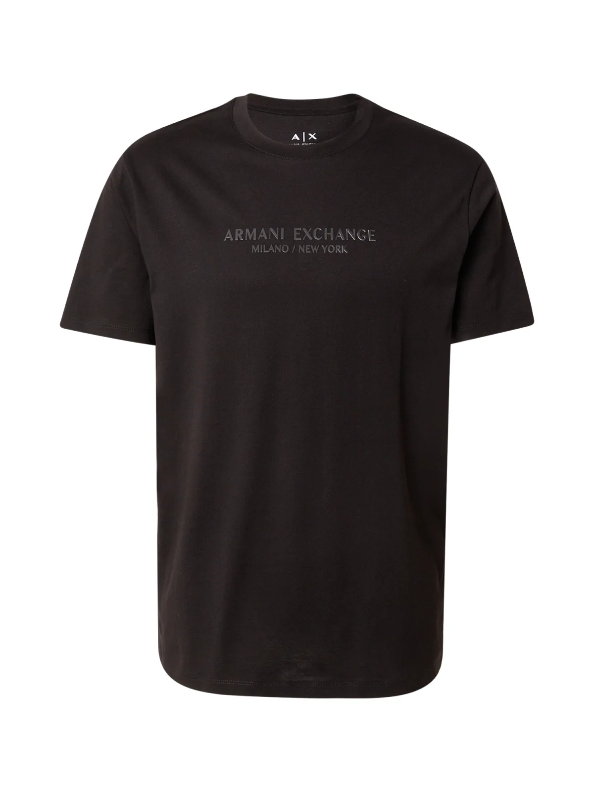 Zwart katoenen T-shirt voor heren van Armani Exchange Milano New York AX. Authentieke kleding van het merk Armani Exchange – streetwear/sportkleding design van Armani Exchange – herenmode van Armani Exchange, perfect voor dagelijks gebruik – dit zwarte Armani Exchange T-shirt is ideaal te combineren met de rest van je garderobe – comfortabel katoen – klassiek – Milano New York AX.