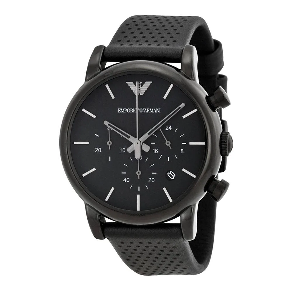 De strakke look begint met de roestvrijstalen kast van 41 mm, die een gitzwarte wijzerplaat herbergt, versterkt door elegante zilveren uurmarkeringen en wijzers, met het beroemde Armani-logo trots op 12 uur. De zwarte leren band zorgt voor een extra stijlvolle touch. Het Gents Emporio Armani horloge is een must-have als je op zoek bent naar een topdesignerhorloge dat veelzijdig genoeg is om bij elke outfit te combineren.