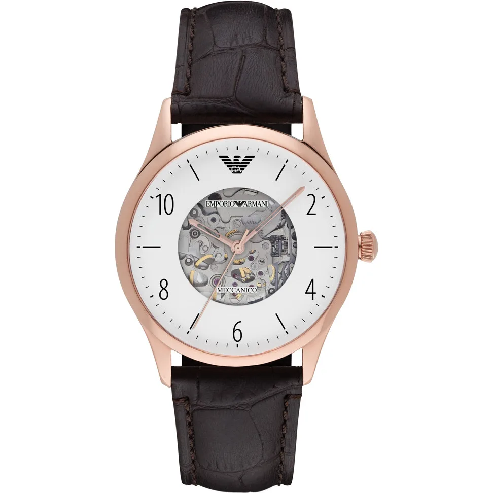 Het Meccanico Rose Gold en Brown Leather Emporio Armani Watch AR1920 voor heren is een adembenemend herenhorloge. Dit horloge heeft een 41 mm roségouden kast met een eenvoudige weergave. Het horloge heeft een skeleton wijzerplaat met een bruin afgewerkte kalfsleren band en wordt geactiveerd door middel van aangepaste verbeteringen. Het horloge is waterdicht tot 50 meter en wordt geleverd met een showdoos. 41 mm breed