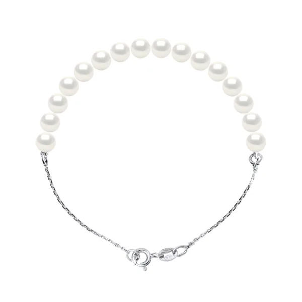 Armband Echte Gecultiveerde Zoetwaterparel Rond 6-7 mm - KLEUR NATUURLIJKE PAREL WIT - Ketting Forçat Zilver 925 Rhodium gecoat - Geleverd met Certificaat van Echtheid en Internationale Garantie - GEMAAKT IN FRANKRIJK