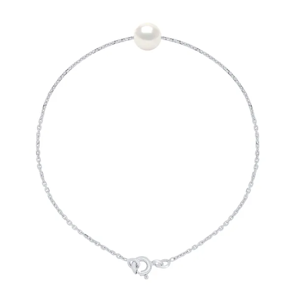 Armband Echte Gekweekte Zoetwaterparel Rond 7-8 mm - KLEUR NATUURLIJKE WITTE PEARL - Forçat Schakel van Zilver 925 Rhodium behandeld - Lengte 18 cm - Geleverd met Certificaat van Authenticiteit en Internationale Garantie MADE IN FRANCE