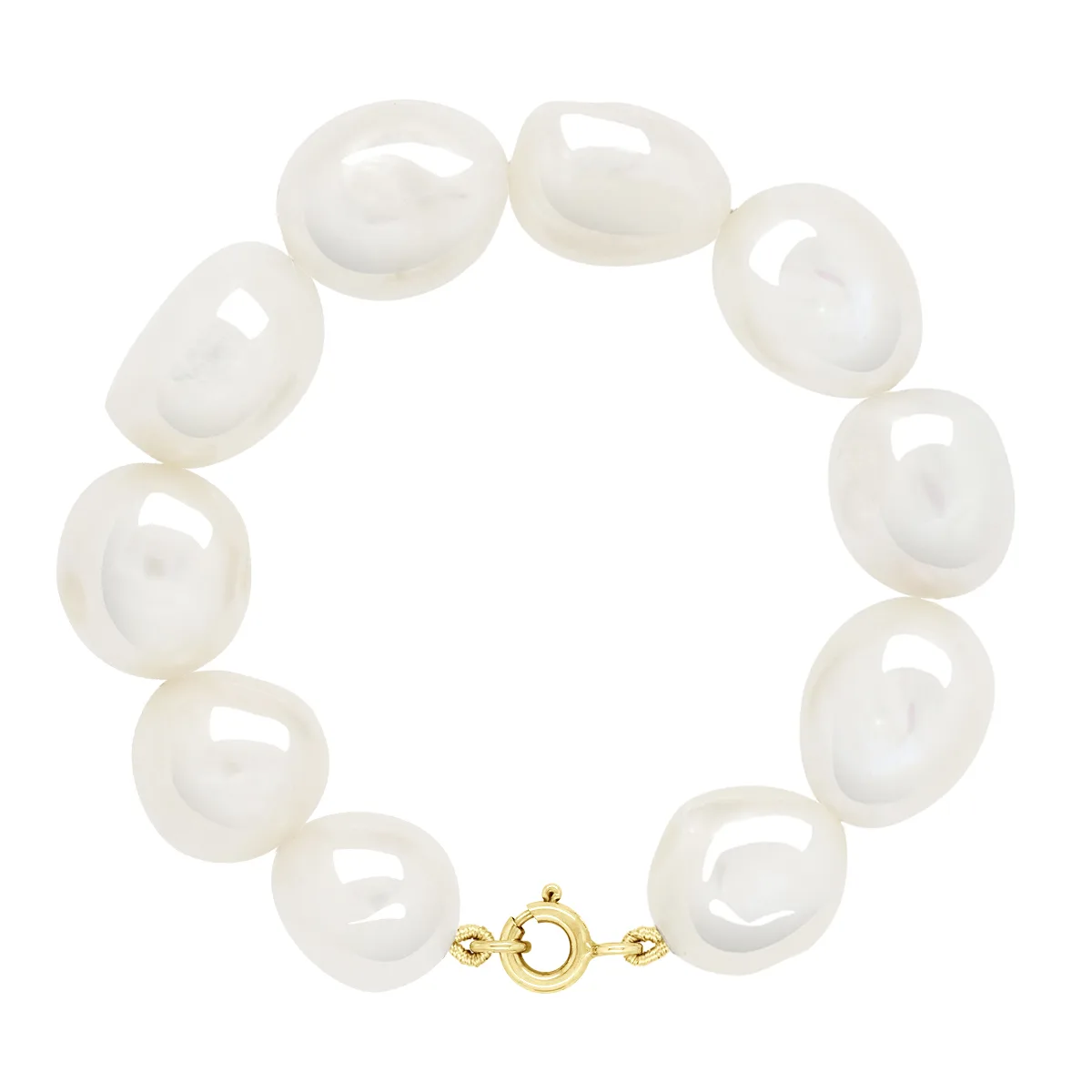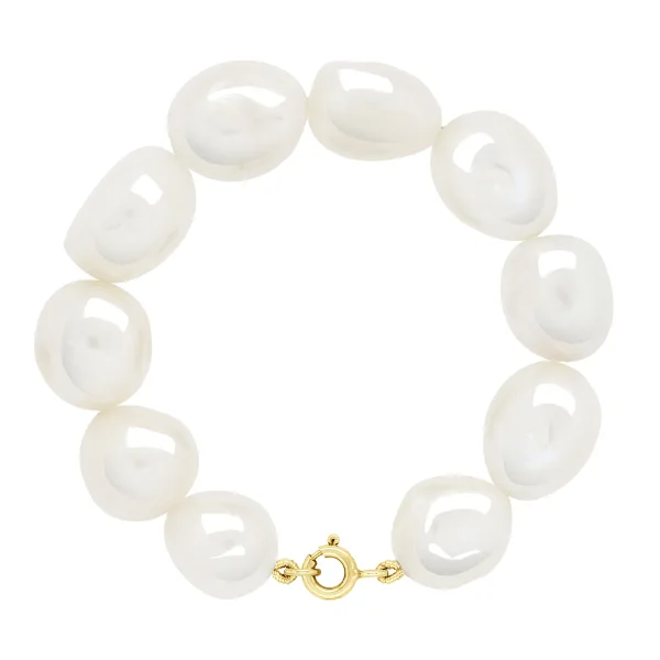 Armband Goud - Rij van Echte Zoetwater Parels Barok 11-12 mm - KLEUR NATUURLIJK WIT - Lengte 18 cm - Veerring Sluiting Comfort Geel Goud - Wordt geleverd met Certificaat van Authenticiteit en Internationale Garantie - GEFABRICEERD IN ONZE FRANSE WERKPLAATSEN