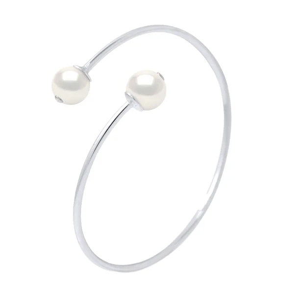 Armband PRESTIGE You & Me - Zilver 925 - versierd met 2 Echte Gecultiveerde Zoetwaterparels - KLEUR NATUURLIJK WIT - Verstelbare maat voor een polsomtrek van 14 tot 20 cm - Geleverd met een Certificaat van Authentiek en Internationale Garantie - GEMAAKT IN FRANKRIJK