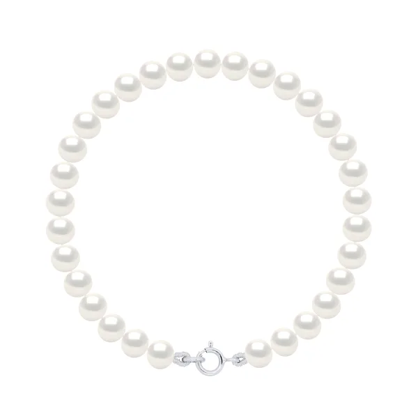 Armband van Echte Gecultiveerde Zoetwaterparels Semi Rond 5-6 mm - KLEUR NATUURLIJKE PAREL WIT - Veerring Sluiting Zilver 925 - Lengte 18 cm - Geleverd met Certificaat van Authenticiteit en Internationale Garantie - GEMAAKT IN FRANKRIJK