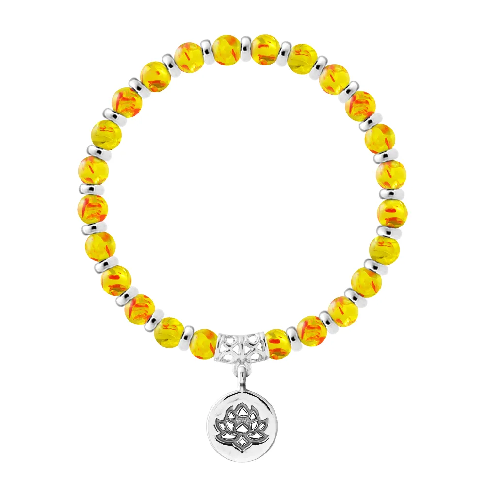 Armband Pure Gem | AMBER - Ferrules 'MAGIC LOTUS' Sterling Zilver 925 Duizendsten | HR® elastisch - Hoge Weerstand | Gefabriceerd in onze Franse Werkplaats | Geleverd met onze prestigieuze doos en een certificaat van garantie & echtheid