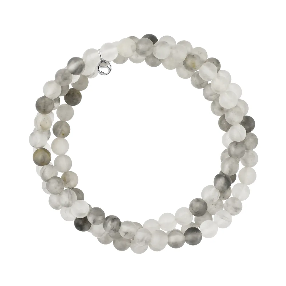 Armband Triple Row - Grijze Kwartssteen - Sterling Zilver 925 Duizendsten Ferrules | HR® elastisch - Hoge Weerstand | Gefabriceerd in onze Franse Werkplaats | Geleverd met onze prestigesdoos en een certificaat van garantie en authenticiteit