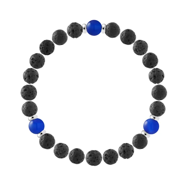 Armband | Natuurlijke lavasteen | Diameter 8 mm - LAVASTEEN - BLAUWE AGAAT - Sterling Zilver 925 Duizendsten Fittingen | HR® elastisch - Hoge Weerstand | Gepubliceerd in onze Franse Werkplaats | Geleverd met onze prestigieuze doos en een garantie- en echtheidscertificaat