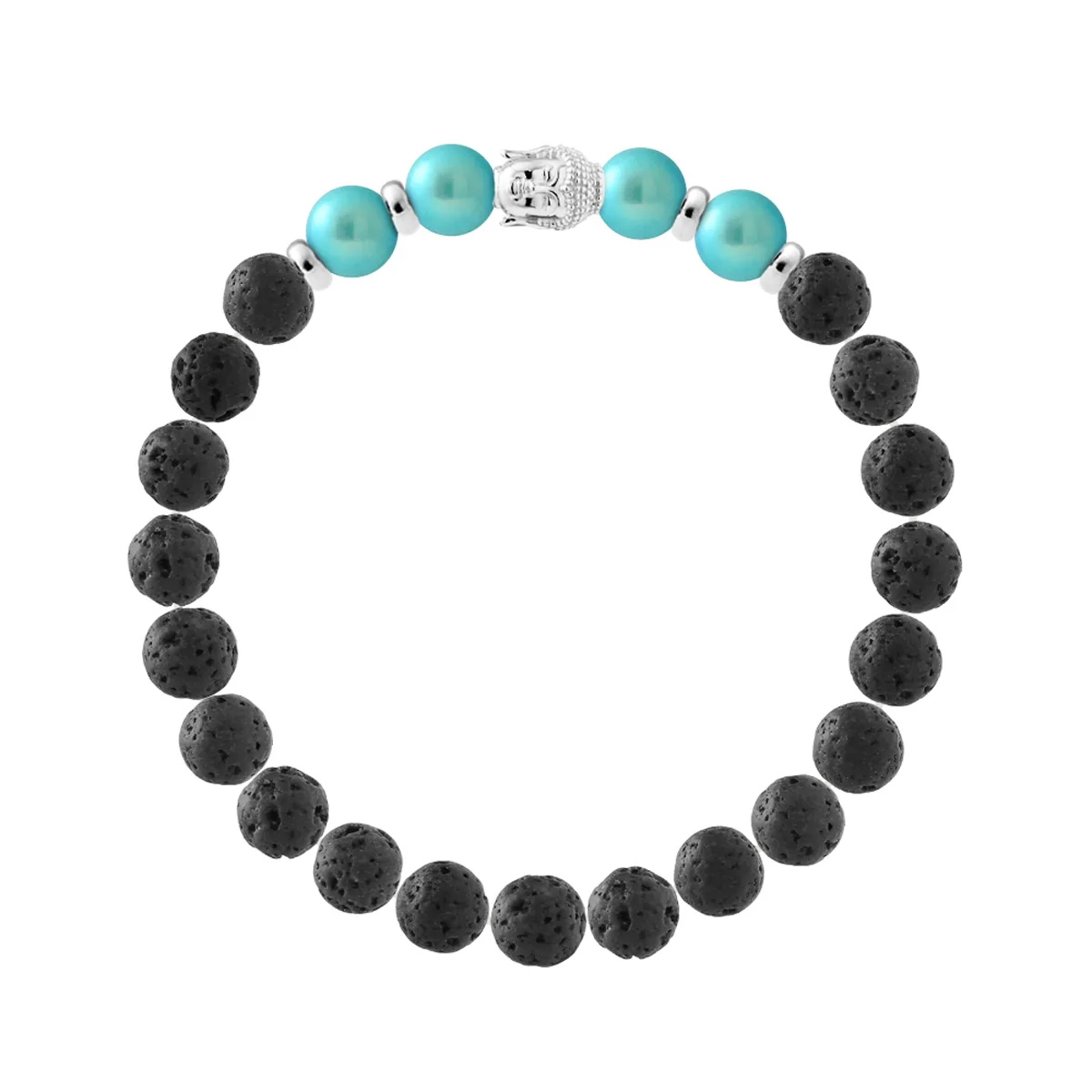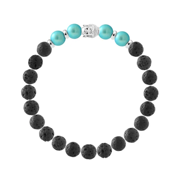 Armband | Natuurlijke Lavasteen | Diameter 8 mm - LAVASTEEN - TURQUOISE FRESHWATER PEARL - Sterling Zilver 925 Tienduizendsten Koppelingen | HR® elastisch - Hoge Weerstand | Gemaakt in onze Franse Werkplaats | Geleverd met onze prestigieuze doos en een garantiebewijs & echtheidscertificaat