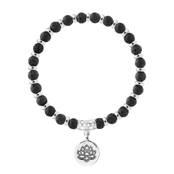 Armband Pure Gem | Natuurlijke Lava steen - Fittingen 'MAGIC LOTUS' Sterling Zilver 925 Duizendsten | HR® elastisch - Hoge Weerstand | Gefabriceerd in onze Franse Werkplaats | Wordt geleverd met onze prestigieuze doos en een garantie- en authenticiteitscertificaat