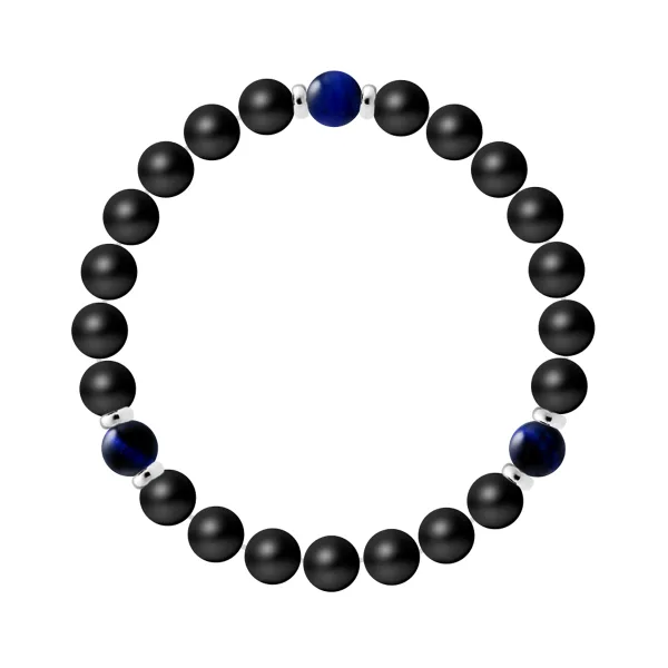 Armband 3 Stenen - NATUURLIJKE MATZWARTE AGAT | FALCON EYE | Sterling Zilver 925 Duizendsten Ferrules | HR® elastisch - Hoge Weerstand | Gemaakt in onze Franse Werkplaats | Geleverd met onze luxe doos en een certificaat van garantie & authenticiteit