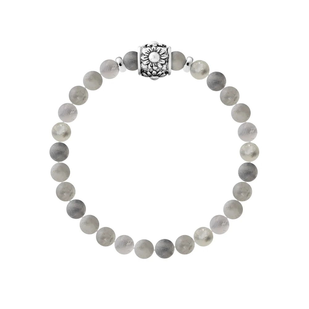 Armband Pure Gem | Grijze Kwartssteen | Ferrules 'HAPPY LOVE' Sterling Zilver 925 Duizendsten | HR® elastisch - Hoge Weerstand | Gefabriceerd in onze Franse Werkplaats | Geleverd met onze prestige doos en een certificaat van garantie & authenticiteit