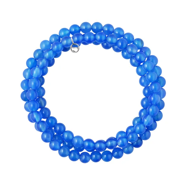 Armband Drie Rijen - AGATE BLAUW NATURELLE - Sterling Zilver 925 Duizendsten Ferrules | HR® elastisch - Hoge Weerstand | Gemaakt in onze Franse Werkplaats | Geleverd met onze prestigedoos en een certificaat van garantie & authenticiteit