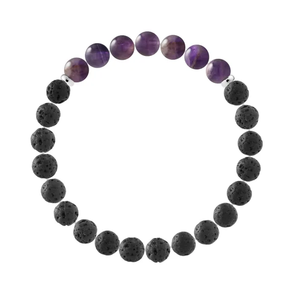 Armband | Natuurlijke Lavasteen | Diameter 8 mm - LAVASTEEN - AMETHYSTE STEEN - Sterling Zilver 925 Duizendsten Beugels | HR® elastisch - Hoge Weerstand | Gemaakt in onze Franse Werkplaats | Wordt geleverd met onze luxe doos en een certificaat van garantie en authenticiteit