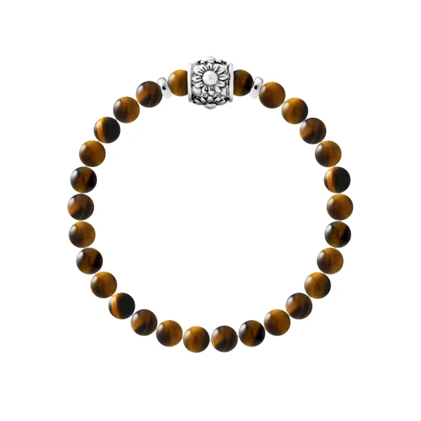 Armband Pure Gem | TIGER EYE STEEN | Ferrules 'HAPPY LOVE' Sterling Zilver 925 duizendsten | HR® elastisch - Hoge Weerstand | Gemaakt in onze Franse Werkplaats | Geleverd met onze prestige doos en een garantie- en authentiteitscertificaat