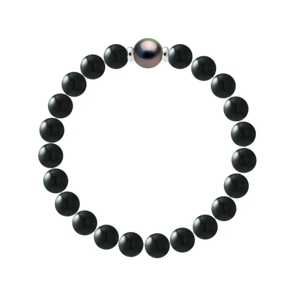 Armband - Echte Tahitiaanse Cultured Parels Ronde vorm 9-10 mm - ONYX ZWART BLIJVENDE - Sterling Zilver 925 Duizendsten Ferrules | HR® elastisch - Hoge Weerstand | Gemaakt in onze Franse Werkplaats | Geleverd met onze prestige doos en een certificaat van garantie en authenticiteit