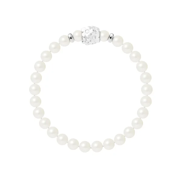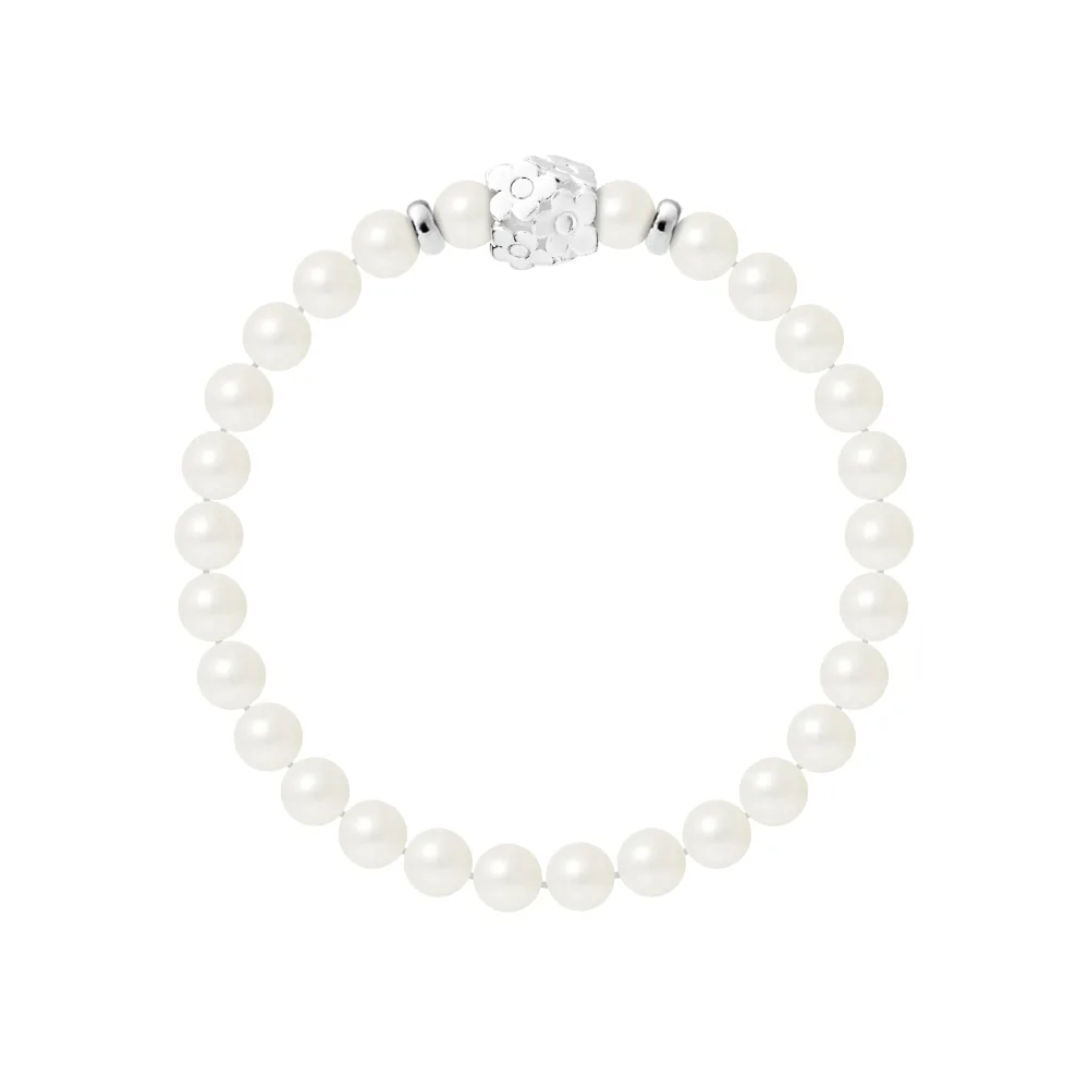 Armband Pure Gem | Zoetwater Kwaliteit AA - Natuurlijke Witte Kleur | Ferrules 'FLOWER POWER' 'S' Sterling Zilver 925 Duizendsten | HR® elastisch - Hoge Weerstand | Vervaardigd in onze Franse Werkplaats | Geleverd met onze prestige doos en een garantie- en echtheidscertificaat