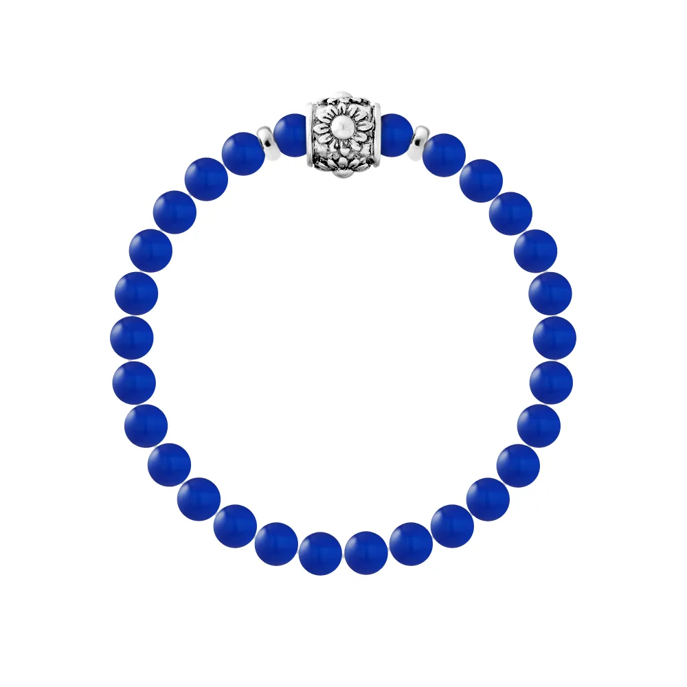 Armband Pure Gem | BLAUWE hemel AGAAAT | Ferrules 'HAPPY LOVE' Sterling Zilver 925 duizendsten | HR® elastisch - Hoge Weerstand | Gemaakt in onze Franse Werkplaats | Geleverd met onze prestigebox en een certificaat van garantie & authenticiteit