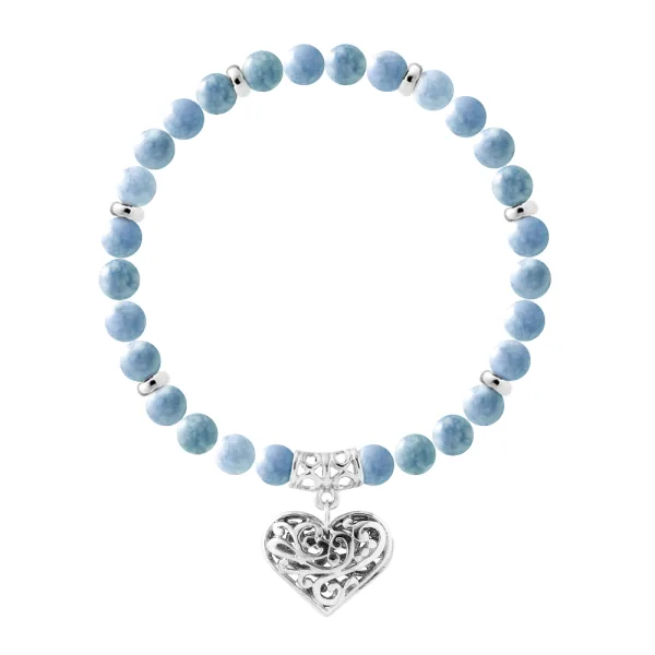 Armband Pure Gem | AQUAMARIJN | Ferrules 'MIJN HART' Sterling Zilver 925 duizendsten | HR® elastisch - Hoge Weerstand | Gemaakt in onze Franse Werkplaats | Wordt geleverd met onze prestigedoos en een garantie- en authenticiteitscertificaat